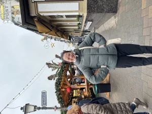 Tuy nhiên, khi đi một vòng quanh chợ để tìm đồ ăn, mình nhận thấy quầy bán đồ ăn khá ít — chưa đến 10 quầy trong tổng số hơn 80 gian hàng. Xem qua giá cả thì thấy mỗi món mắc hơn khoảng 1€ so với các chợ ở nơi khác, nên mình cũng không hào hứng lắm. Cuối cùng, hai đứa chỉ uống Glühwein và Kinderpunsch rồi ra về. Sau một chuyến đi dài thì thu về được kha khá hình kỉ niệm nên cũng vui hihi 😊.